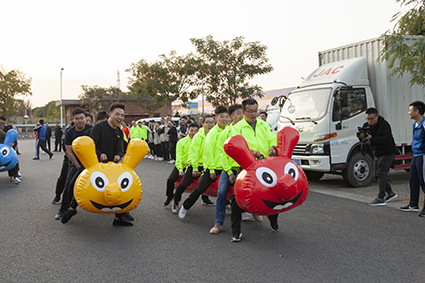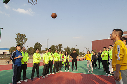 本次運(yùn)動(dòng)會(huì)共設(shè)6個(gè)項(xiàng)目:3V3男子籃球賽、定點(diǎn)投籃、袋鼠跳、三人兩足、毛毛蟲(chóng)競(jìng)速、拔河,旨在以趣味性調(diào)動(dòng)工作積極性,以參與感增進(jìn)集體融入感,加深團(tuán)隊(duì)了解,開(kāi)掘更有默契的協(xié)作能力。 簡(jiǎn)單不失莊重的入場(chǎng)式上,明快有力的音樂(lè)鋪墊出充斥著歡樂(lè)、奮進(jìn)、友誼的氣氛元素,國(guó)旗、公司旗在八位營(yíng)銷員工的護(hù)送下帶領(lǐng)各參賽隊(duì)伍先后入場(chǎng),伴隨著浙閩渝大區(qū)經(jīng)理賴揚(yáng)軍敲響銅鑼,運(yùn)動(dòng)會(huì)正式開(kāi)始。