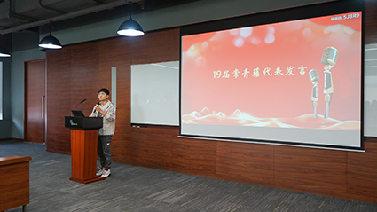 儀式開始,首先是19屆常青藤員工撰寫自己對于未來的寄語,信封封好后投入“時間膠囊”中,并在全體人員的見證下正式封罐,等待三年之后再次開啟。來自生產系統的學員從就業選擇、企業印象、短期規劃等三個方面代表19屆常青藤員工發言。
