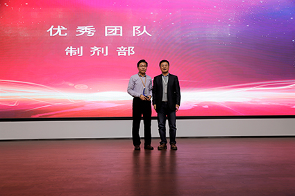 頒獎環節上,榮獲優秀員工、銳意進取團隊、優秀項目負責人、優秀團隊負責人、優秀團隊的先進員工代表先后上臺領獎。此外,尤其值得一提的是本次頒獎環節特設“總經理特別獎”,對2018年為公司發展做出突出貢獻的“恩替卡韋一致性評價團隊”、“硼替佐米研發團隊”、”帕瑞昔布鈉研發團隊”進行了獎勵。頒獎環節結束后,副總經理張翎宣讀了南京正大天晴研究所正式升格為“南京正大天晴藥物研究院”的決定,并宣讀了研究院相關人員的任命。