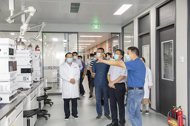 孫愛軍主任一行在田舟山總裁的陪同下,饒有興致的參觀了總部辦公樓、黨建培訓中心和研究院實驗室,對公司在黨建工作、企業文化、產品研發等取得的成績給與積極的肯定。在隨后的座談會上,田舟山總裁從公司的疫情防控工作、企業經營發展和項目建設規劃上做了詳細的匯報,他指出,南京正大天晴發展到今天,離不開經開區各級部門和領導的關懷和支持,離不開經開區良好的投資氛圍和優秀的企業服務意識,公司在目前嚴峻的疫情防控形勢下,將疫情防控提升至公司壓倒一切的首要工作!堅決貫徹落實省市區與省農墾黨委、各級主管部門防疫最新規定與要求,緊而又緊、嚴而又嚴、實而又實,以高度的政治自覺堅決壓實“四方責任”,堅決打贏抗疫阻擊戰。