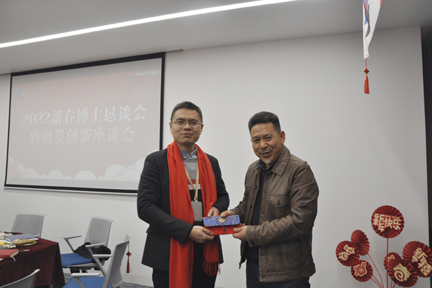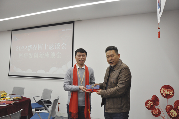 座談會后,田舟山總裁還向博士們派發了“新年紅包”并合影留念。