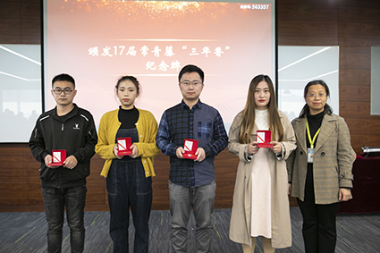 公司副總經理張翎、總經理助理徐丹、生產技術總監原元、生產技術總監朱文華、副總經理助理姜忠軍、認證管理部經理趙紅受邀出席儀式,并為常青藤員工代表頒發轉正證書、獎狀及“一年青”、“三年香”、“6年陳”紀念品。