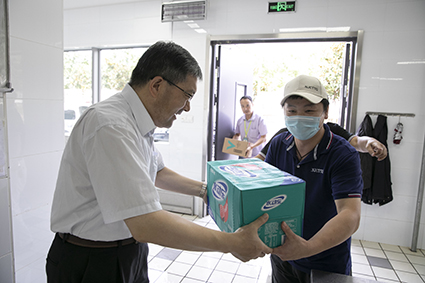 情系職工,夏送清涼。8月14日,江蘇省農墾集團黨委委員、工會主席楊義林造訪南京正大天晴,為公司一線職工送來防暑降溫飲料。公司黨委書記、總經理田舟山熱情迎接了集團領導,并代表公司對集團工會的溫切關懷表示感謝。