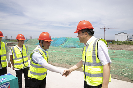 隨后,楊義林前往工地實地了解工程建設情況,并就人員配置、排班及休假、員工用餐等情況向工程人員作深入了解,極大振奮了項目組團隊頑強拼搏、矢志奮斗的干事熱情。