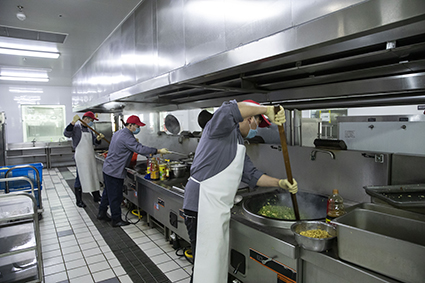 兵馬未動,糧草先行。疫情當前,2月10日能否如期復工?食堂成為通過政府復工核查的一個重要條件!在行政保衛部的統一部署下,恒廣路與惠歐路兩個園區食堂克服人手緊缺、食材短缺等一系列困難,于2月7日成為公司最早復工的單位!人手不足就凌晨5點上班,從早餐準備一直忙到晚上8點晚餐結束;食材短缺就多方籌集,借助核心供應商的優勢,盡最大努力保障膳食均衡。克服重重困難實現了“餐飲保障與疫情防控兩手抓,兩手硬!”