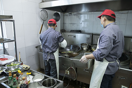 防疫為先,一專多能。食堂既是防疫的重點,更是防疫的難點!一旦出現問題后果將不堪設想。對此食堂每位員工以高度的責任感,多角色無縫轉換嚴防死守。他們一專多能,既是廚師,又是安全員;既是防疫監督員,又是衛生消毒員。他們通過“自助餐”改“分餐”,降低交叉風險!通過“分時段、定點分散就餐”,嚴控人員聚集!通過高頻次消殺作業,確保防疫衛生!通過提供自助消毒酒精與一次性手套,提高員工自我防護!在食堂這一高風險區域織就了一道安全、牢固的防疫網。